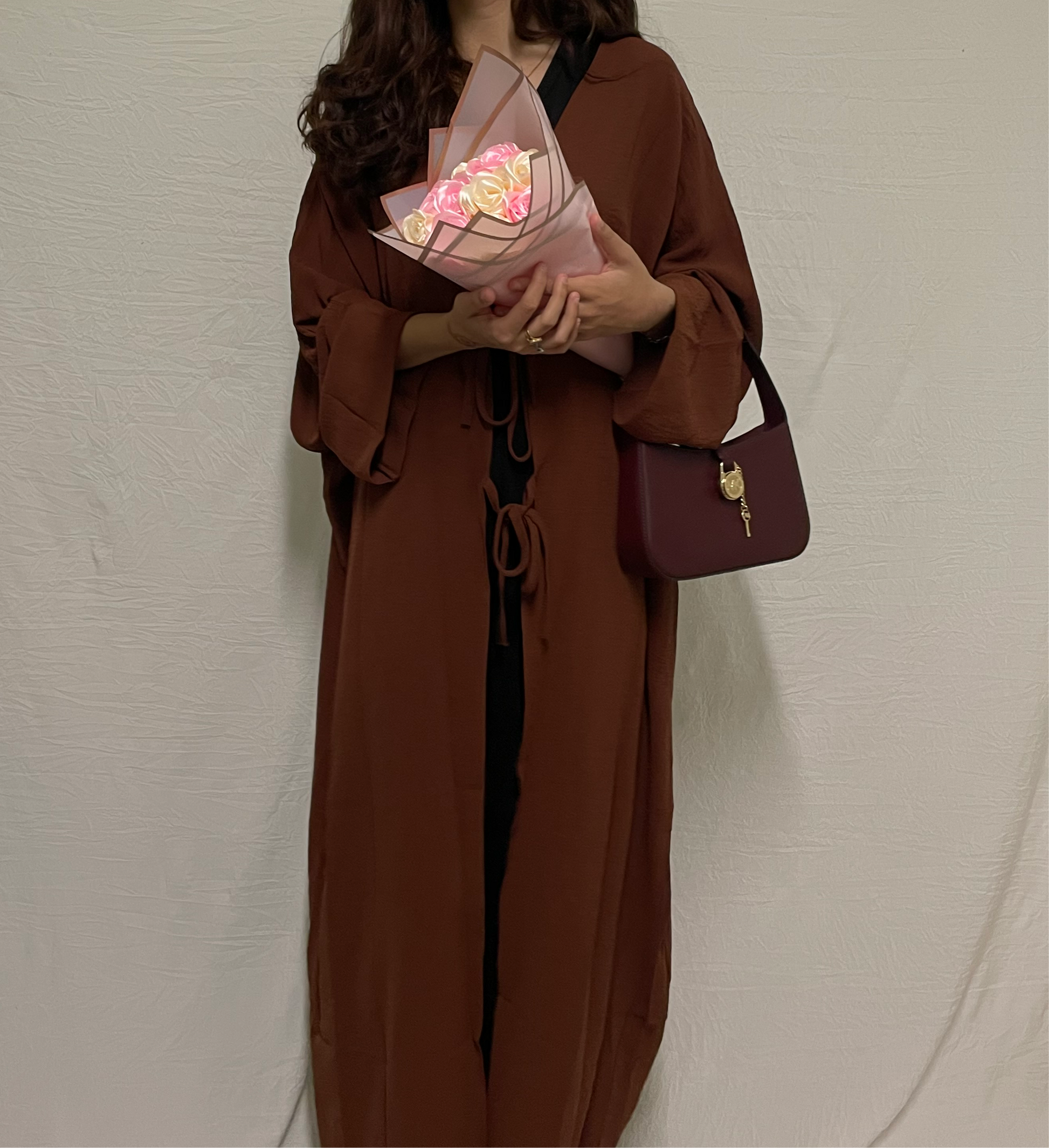 Open crepe frabic abaya with ties